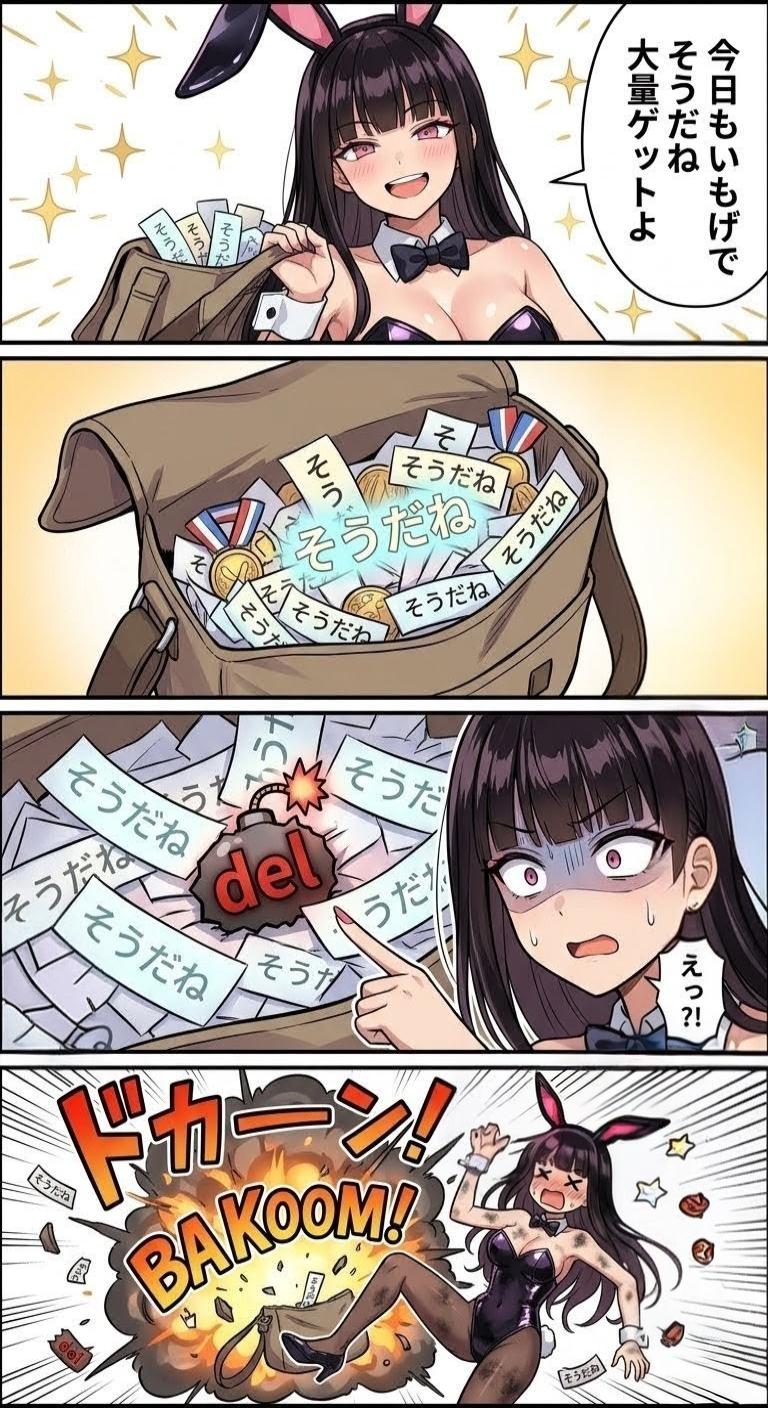| … | 4226/03/28(土)13:45:12No.1415014387そうだねx3一コマ目ですでにバニーの姿でいるというのがAIなりのオチなのか |