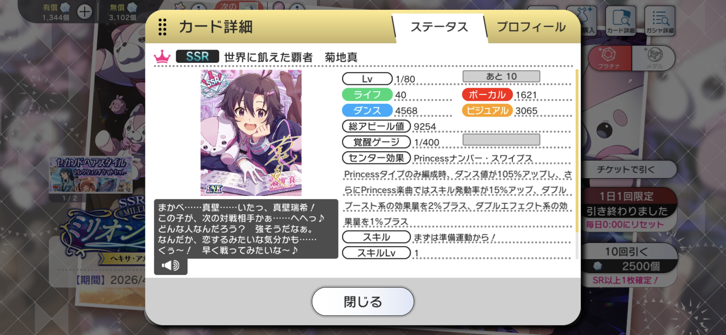| … | 3126/03/28(土)14:20:10No.1415024641+>ちょっと回してみようぜー! これは千早に使うから… 誕生日衣装買ってるからチケットも20枚くらいあるのよね |