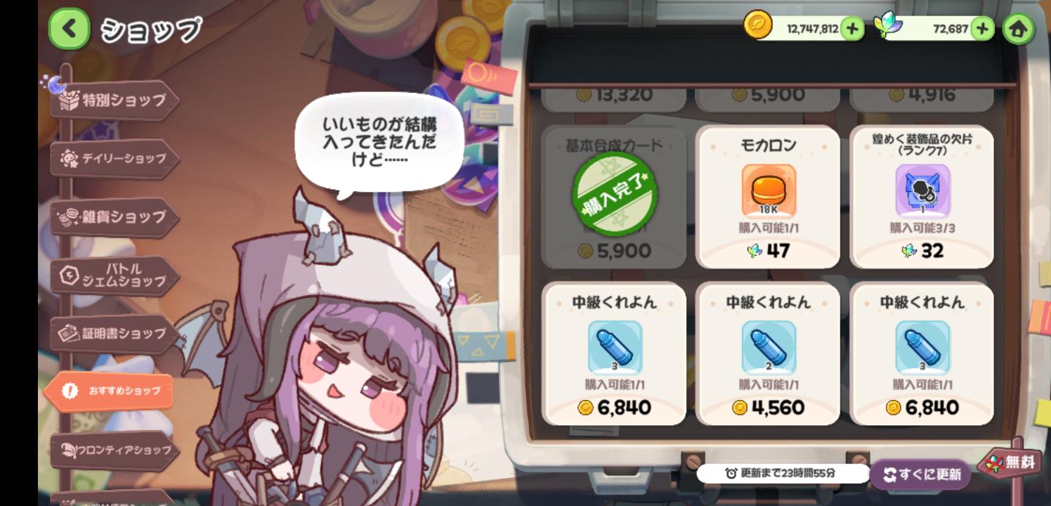 | … | 75026/03/28(土)15:58:12 ID:cu0dAUM6No.1415048680+>1兎コイン300石でもお得な気がして交換してるけど皆んなどうしてるにゃん? |
