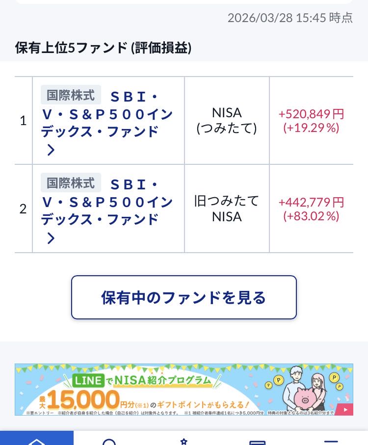 | … | 39226/03/28(土)16:26:32No.1415055054+オルカン組とはかなり差が付いたね… |
