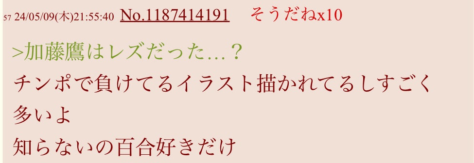 | … | 926/03/28(土)16:19:35No.1415053390そうだねx7>「艦これ」の加古×古鷹(加古鷹)と誤認したとする説を聞いたけど |