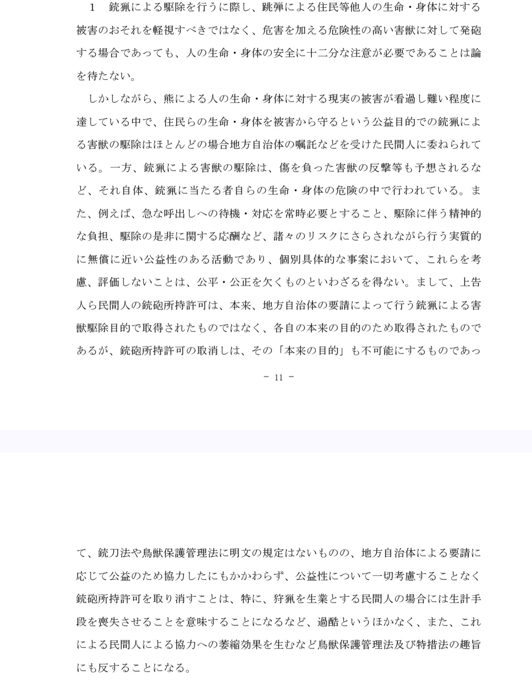 | … | 41426/03/28(土)19:38:57No.1415110406そうだねx1>幸いなことに一審判決は、 本来争点とは無関係であると述べつつも、事案に鑑み詳細に共猟者の証言を検討してその信用性を否定しましたが、札幌高裁は共猟者の証言の信用性を一言も触れることなく跳弾の事実を認定し、公安委員会の処分を追認して一審判決を破棄しました。札幌高裁の判決には、公益活動に従事したことへの配慮は微塵も感じませんでした。 |