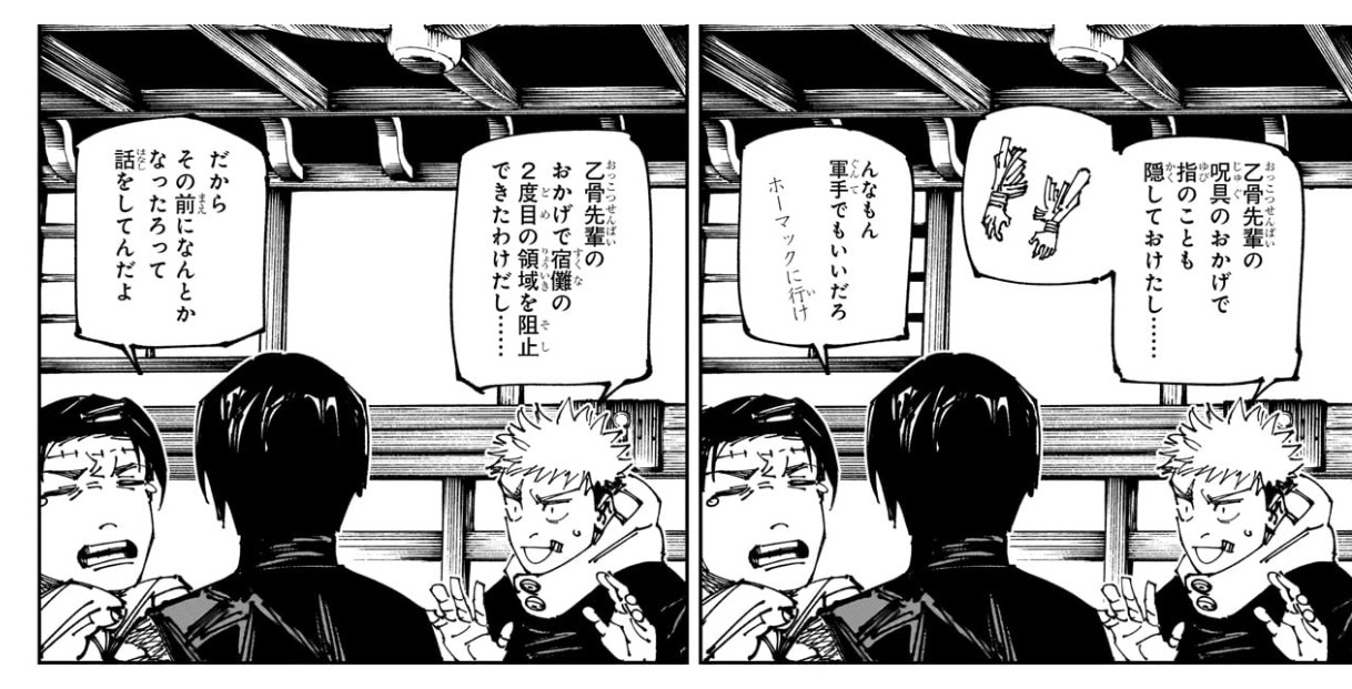 | … | 3726/03/29(日)03:05:06No.1415259338+>ネタバレになるけど新宿で宿儺の領域に巻き込まれて切られた腕が治療不可だから食わせた |