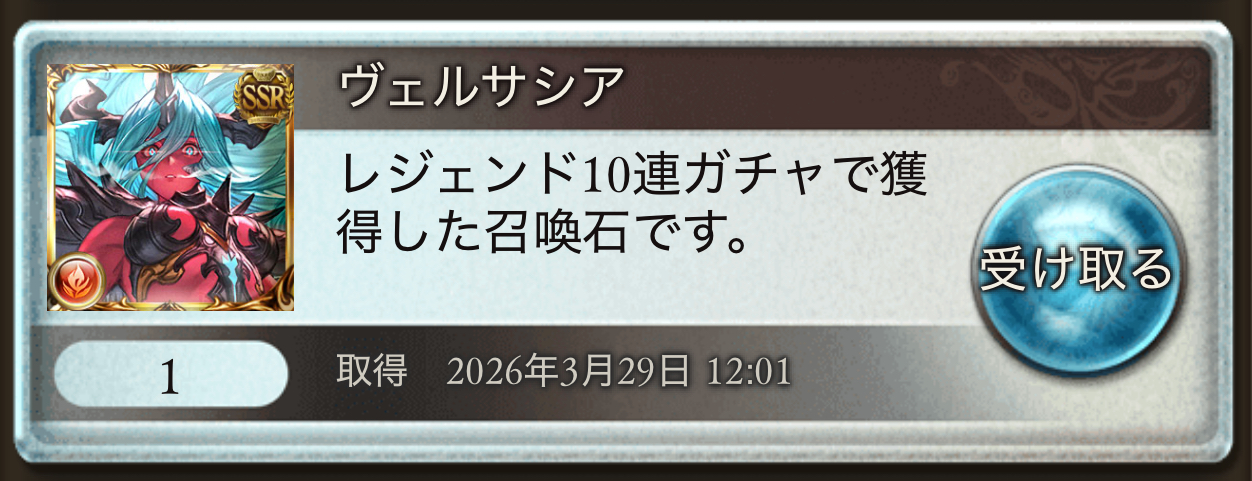 | … | 8826/03/29(日)12:15:56No.1415340532+無料ガチャ期間中にヴェルサシアが3枚も出たんだよ |