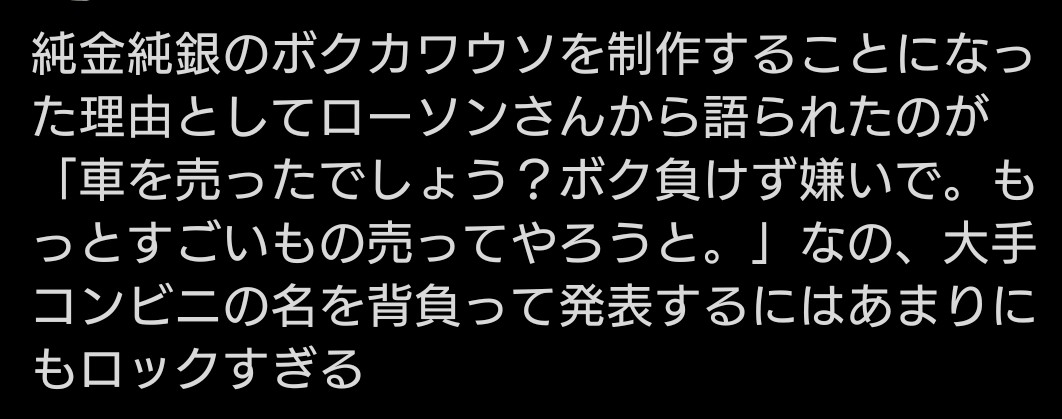 | … | 2026/03/29(日)20:16:39No.1415501085+>と思ったらローソン発案なんデース? |