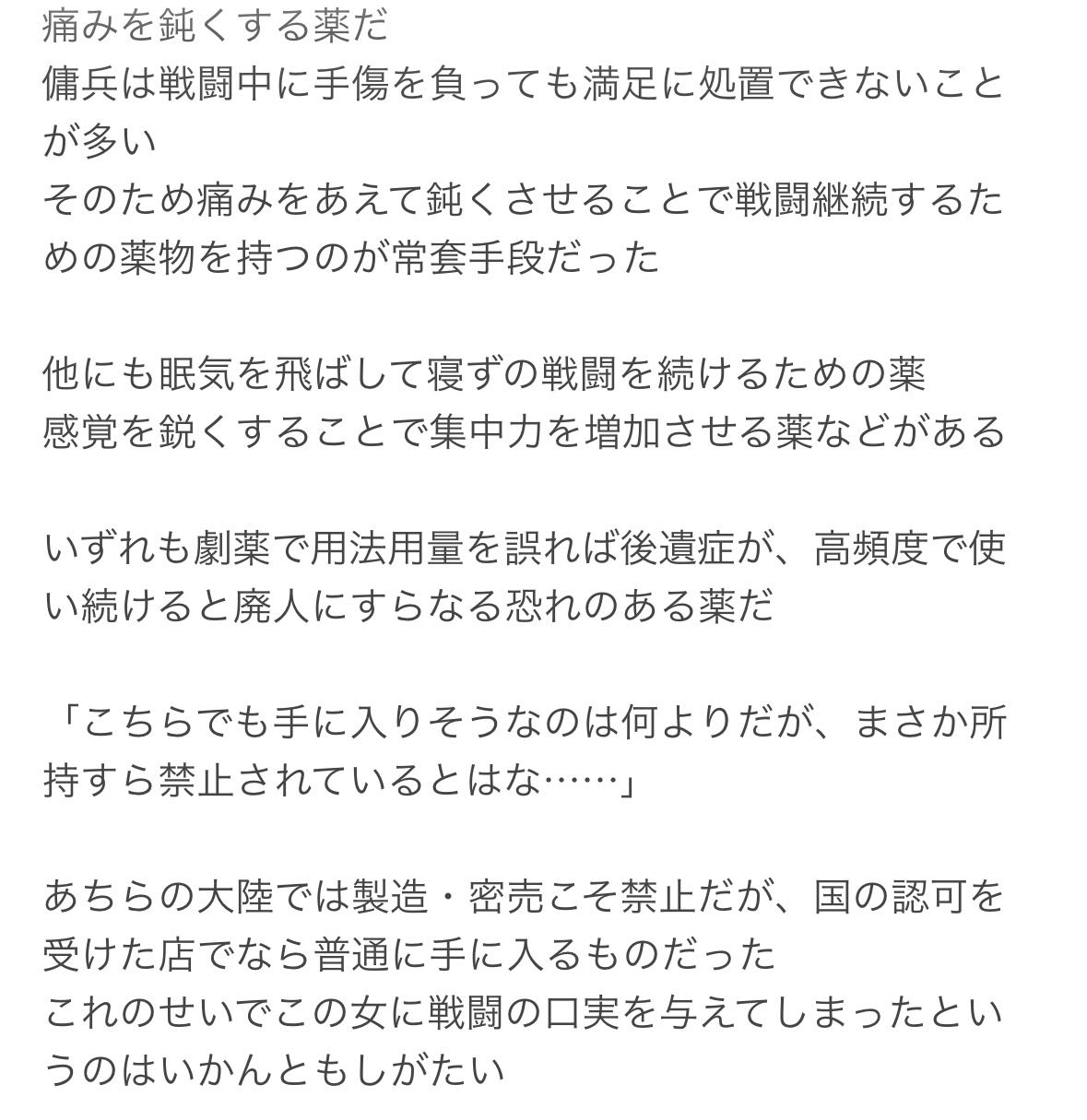 | … | 6226/03/29(日)21:59:15No.1415548930+>ジグさんが使ってたの多分モルヒネとかそういう類だろうからな |