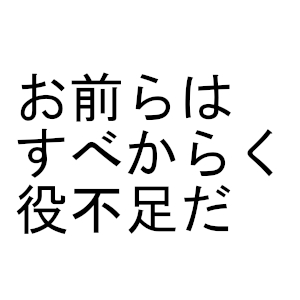 | … | 5426/03/29(日)23:25:16No.1415582957+役不足(やくぶそく)とは、本人の能力・力量に対して、与えられた役目や仕事が軽すぎる、または簡単すぎること |