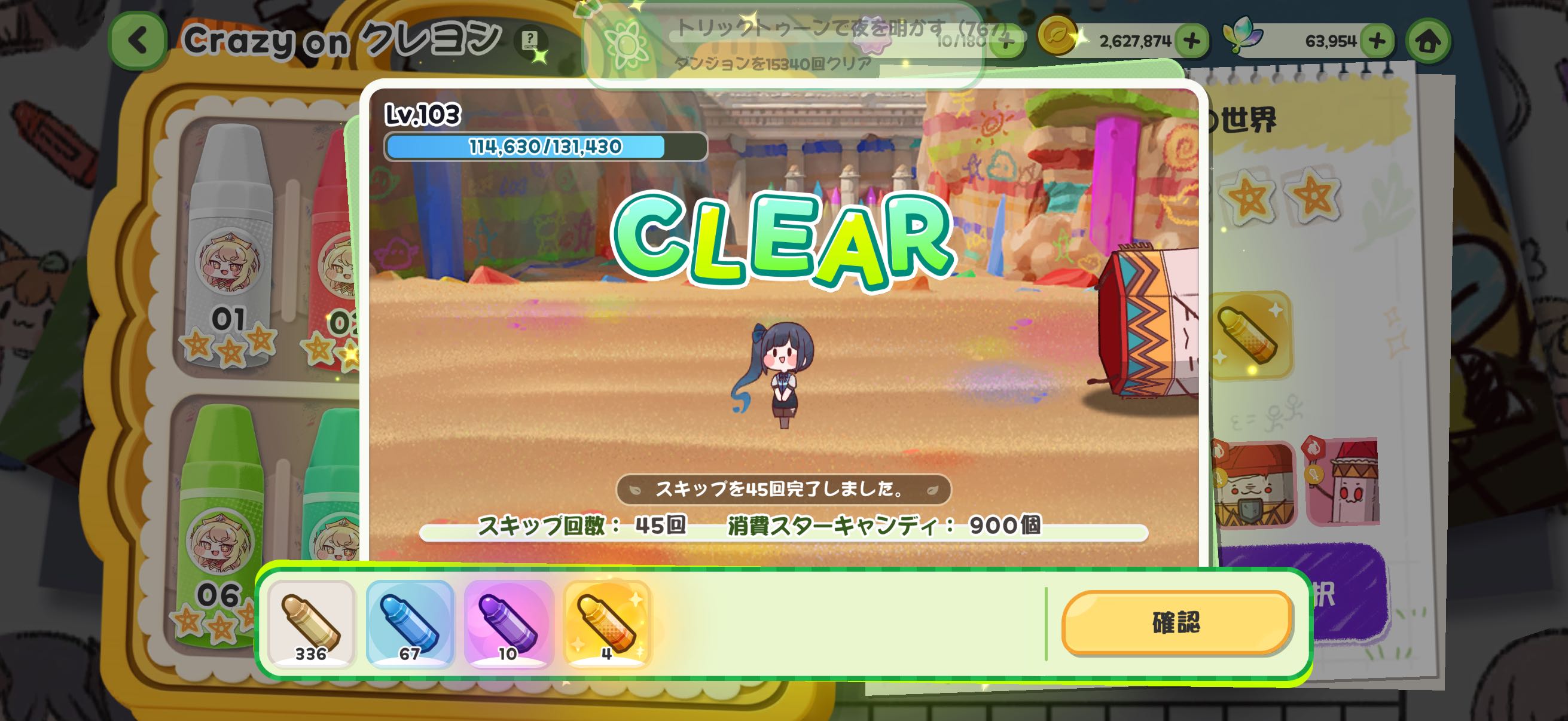 | … | 7826/03/30(月)06:38:43 ID:av4nC9yoNo.1415636984そうだねx210連うさぎガチャしたら紫来てウヒョーってなったけど金クレヨンだったにゃん |