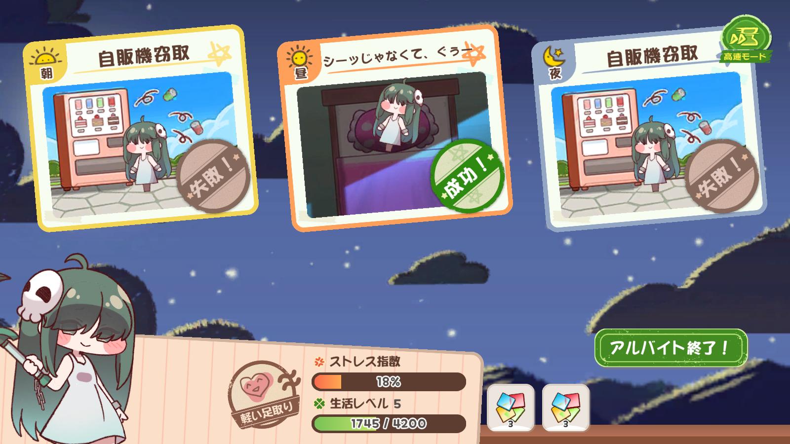 | … | 48526/03/30(月)09:53:24 ID:BN2zlQn6No.1415658923そうだねx1生活レベル5のサリーは上昇したバイトのレベルにステータスが付いていけてないにゃん… |