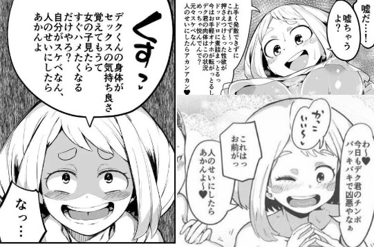 | … | 5226/03/30(月)10:00:18No.1415659944+優位に立つために女子の体奪ったらデクちんぽにドハマりとか笑ってしまう展開すぎる |