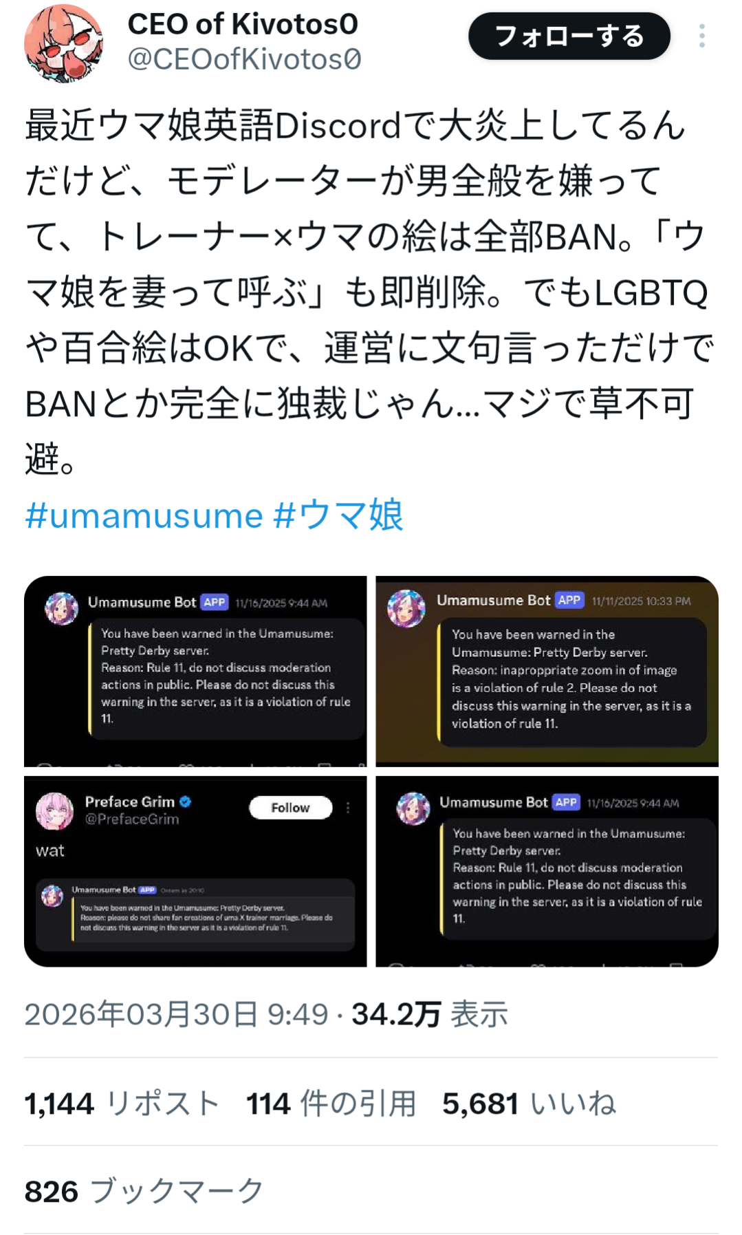 | … | 30326/03/30(月)15:24:09No.1415727676+>>こんな守護騎士気取りがいるウマ界隈にはちょっと同情する |