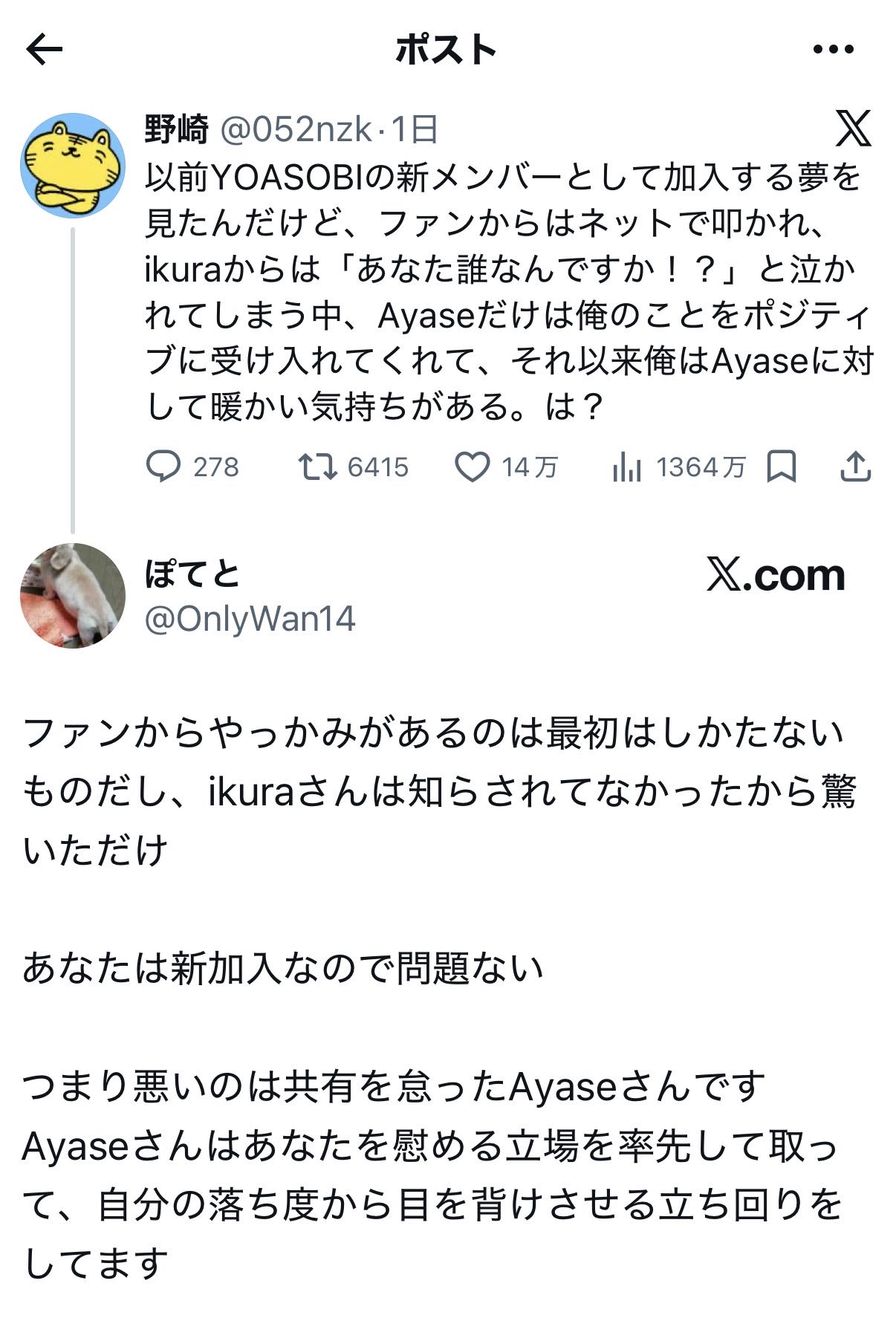 | … | 926/03/30(月)13:26:16No.1415703954そうだねx6優しいふりして本人に知らせず強制加入させたのもAyaseだろこれ |