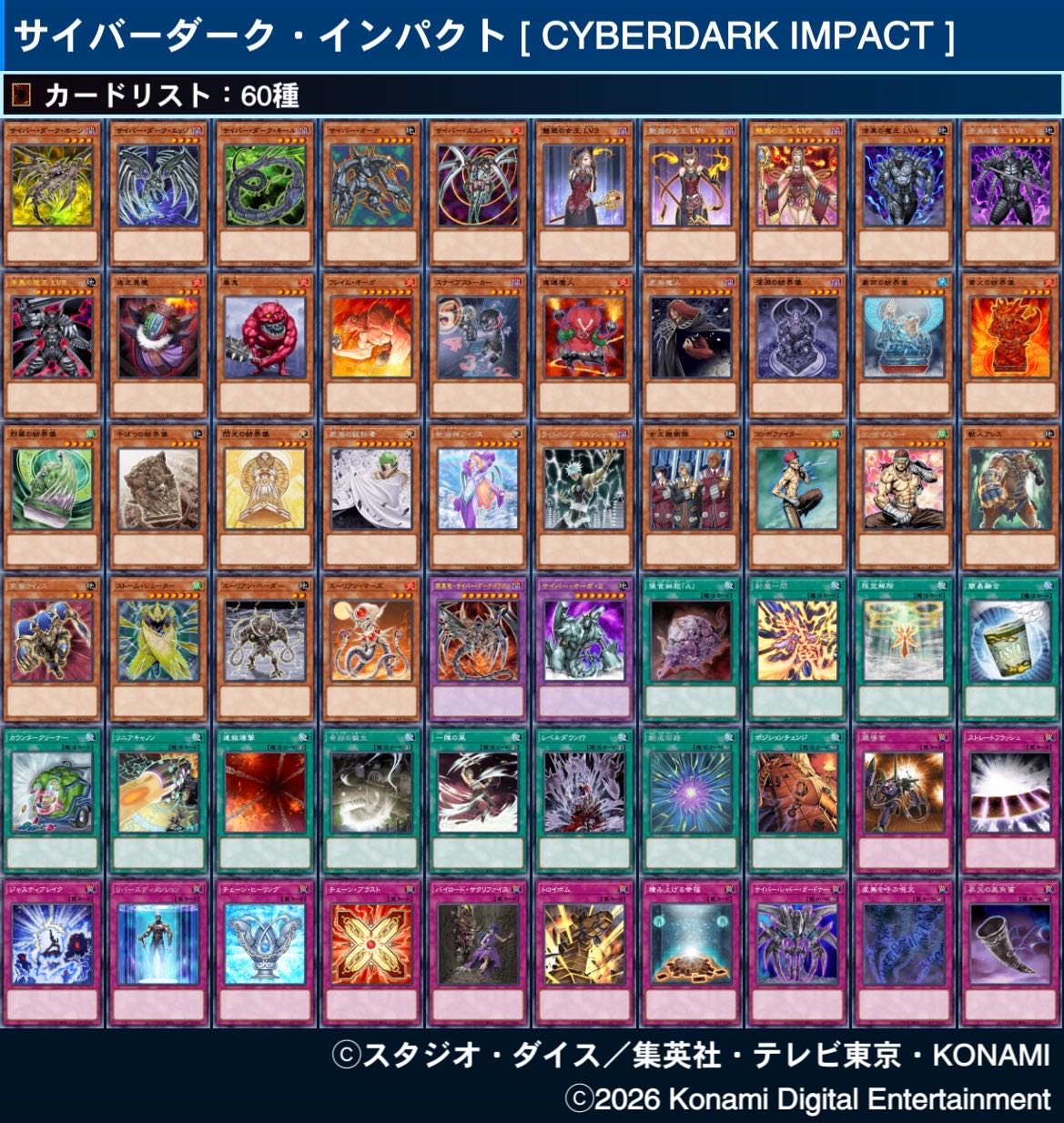| … | 4626/03/30(月)17:51:42No.1415758267+>爆導索やら漆黒の魔王やら連鎖爆撃やら積み上げる幸福やら変なカードが多いサイバーダークインパクト |