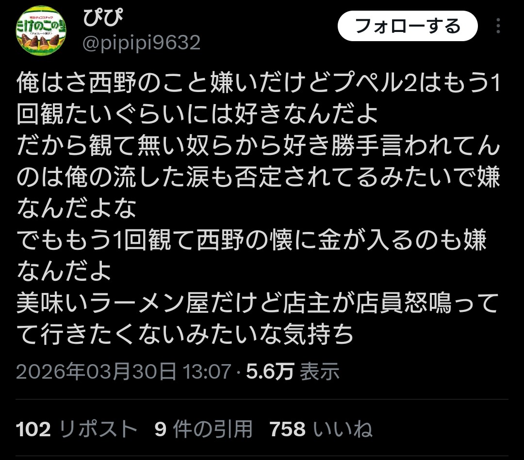 西野と作品を分けて考えられるほど俺は人間が出来ていない