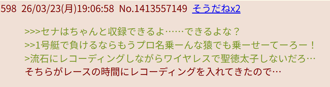 | … | 58026/03/30(月)19:22:00No.1415784109+収録中に変にやる気削ぐようなことは言わないとは思うがYouthK… |