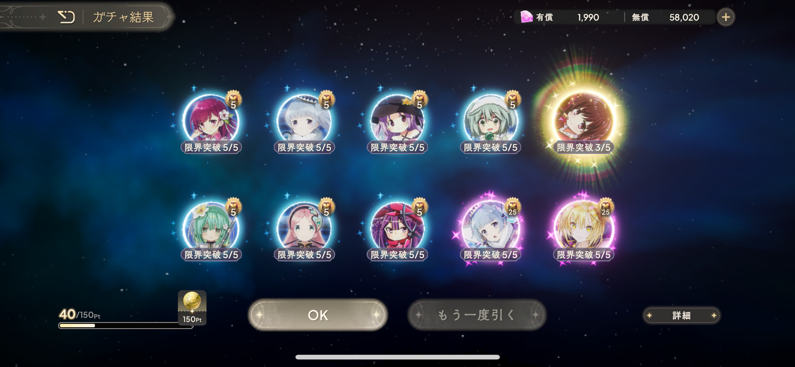 | … | 15726/03/30(月)19:05:51No.1415779137そうだねx2ハロマミさん引くつもりだったけど今回の一連のガチャでかなえが一気に4凸までいってなんか諦めていい気がしてきたの |