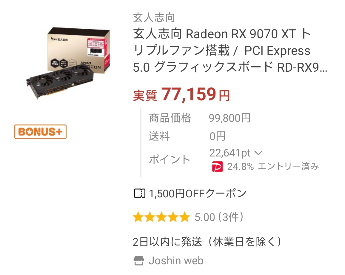 | … | 5426/03/30(月)23:00:06No.1415878298+この前ヤフショで9070は6万ちょいだったから買った |