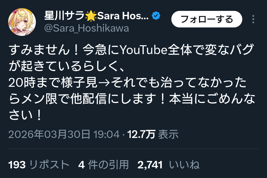 | … | 2426/03/31(火)09:51:34No.1415964788そうだねx7星川が視聴者バグが治らなかったらメン限でやるって言ったの見てなんで…?とはなった |