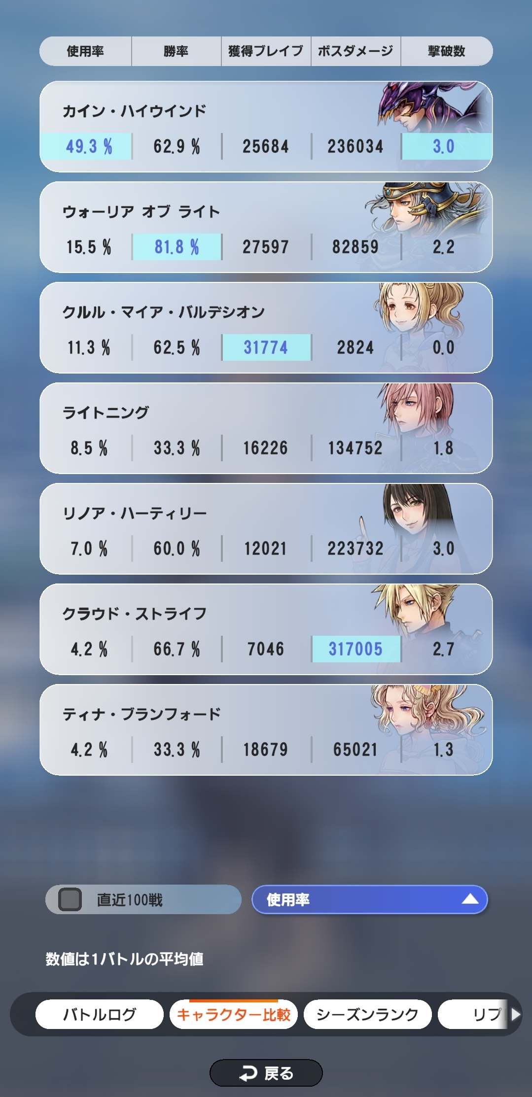 | … | 6226/03/31(火)10:15:13No.1415968650+拙者クラウドで勝率90%あるのにクルルで勝率20%しか出ないのだ何が悪いのだ? |