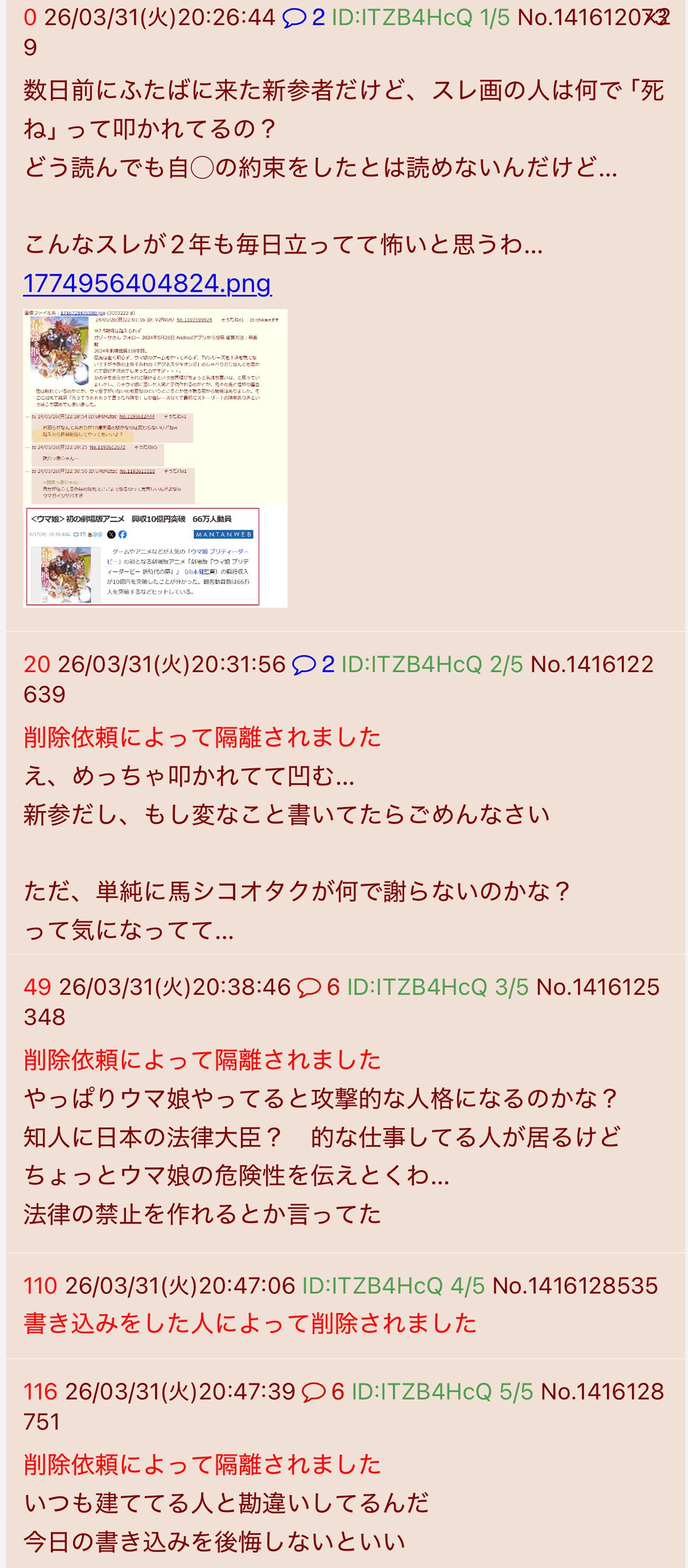 | … | 926/03/31(火)20:28:38 ID:L.MakpfoNo.1416121430+削除依頼によって隔離されました |