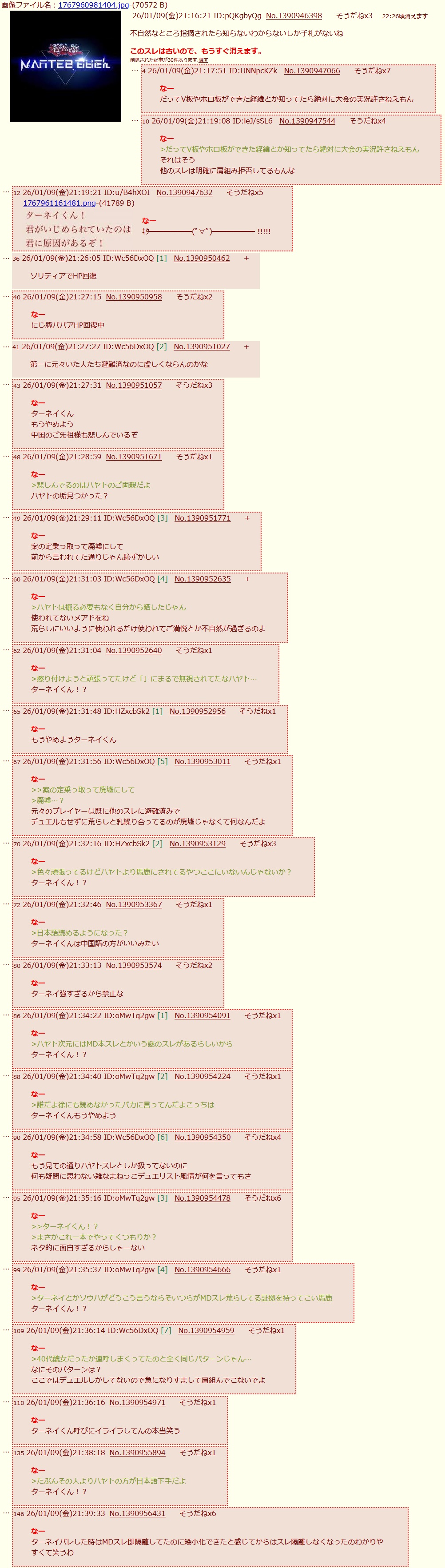 | … | 3426/03/31(火)21:31:48No.1416147786そうだねx2>ハヤト連呼がたまに言うkusouninって何? |