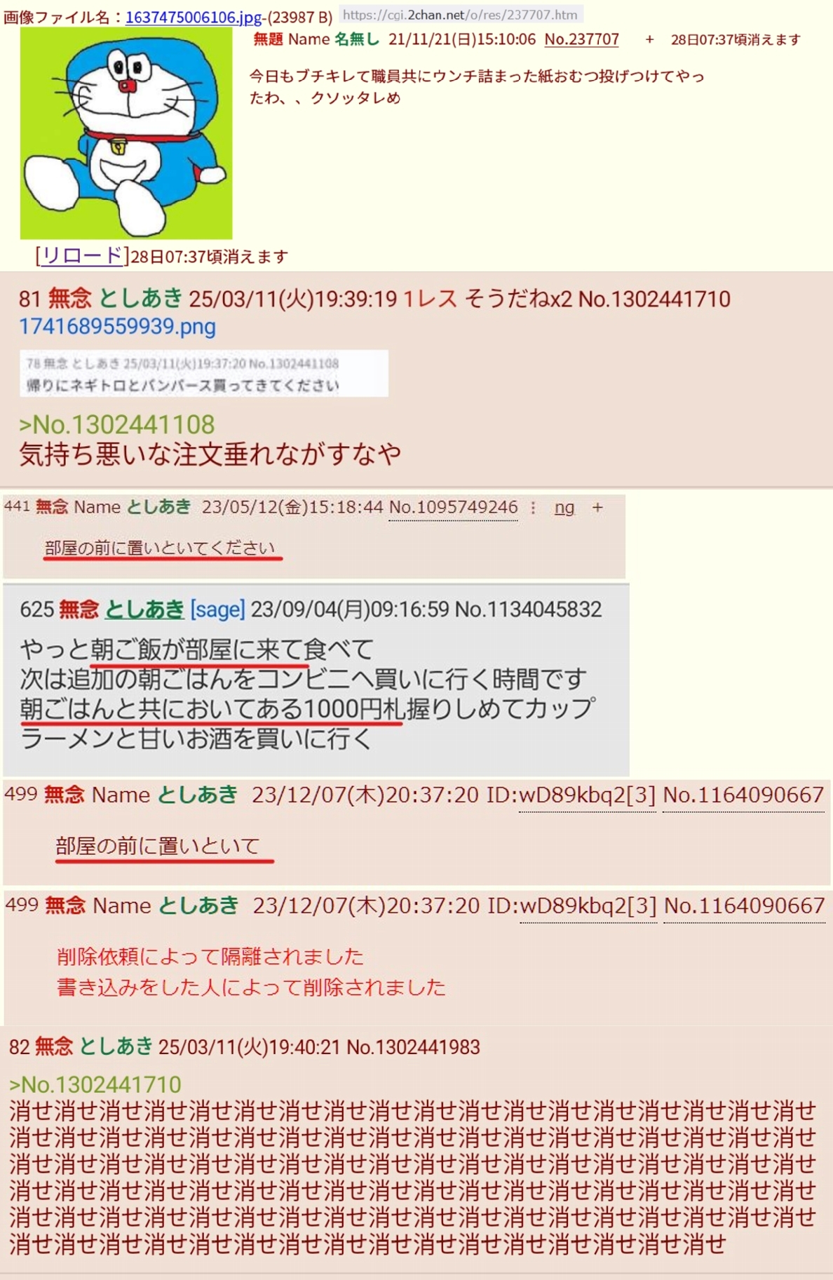 | … | 3926/03/31(火)21:32:38 ID:5d2JT/dcNo.1416148145+削除依頼によって隔離されました |