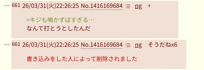 | … | 126/03/31(火)21:27:06No.1416145751そうだねx18削除依頼によって隔離されました |