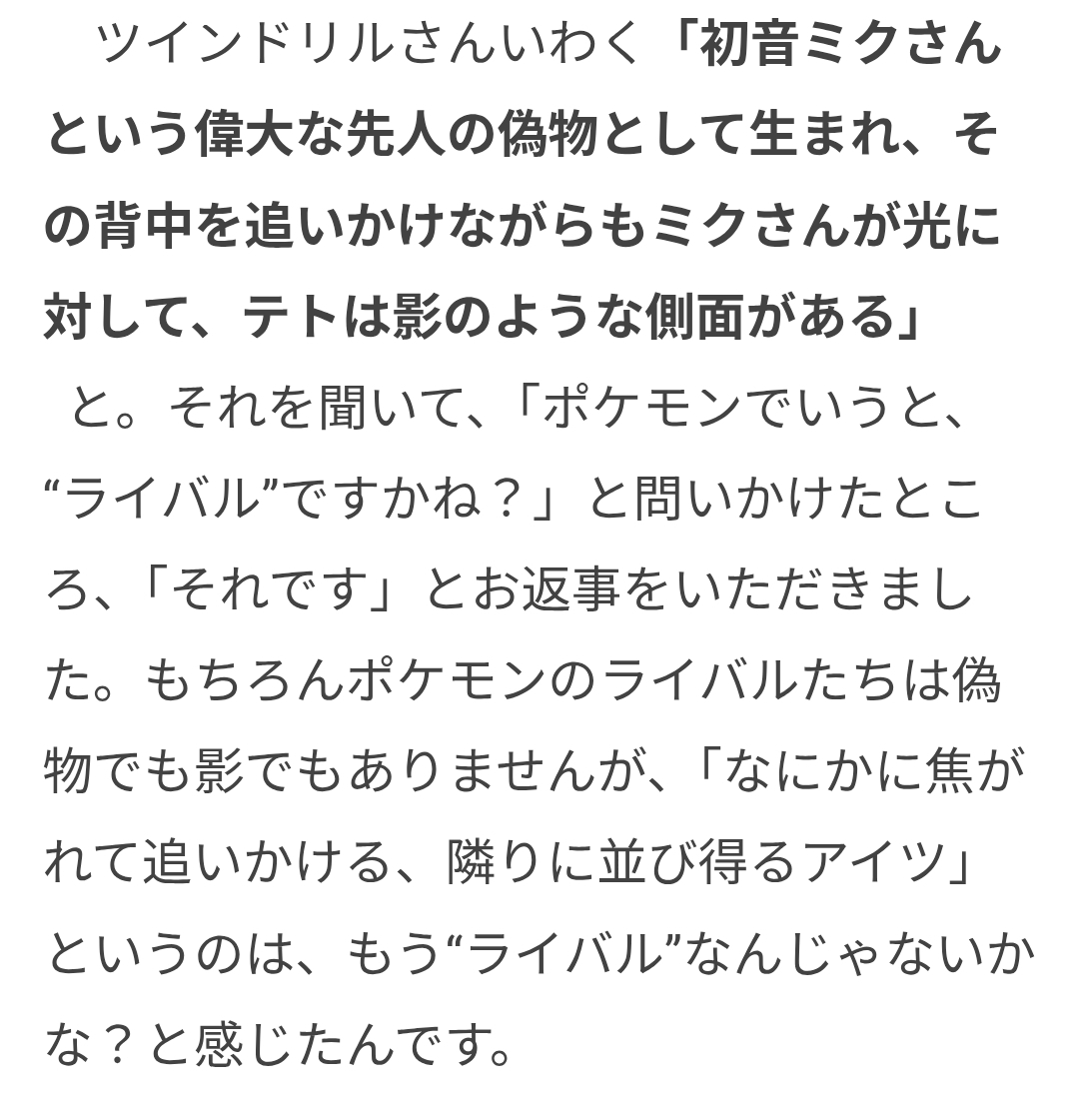 | … | 326/04/01(水)06:40:54No.1416250198+テトのデザインがミクの対になるからとかよく聞くけどそれなら昔からコンビ扱いされてるはずだしな |