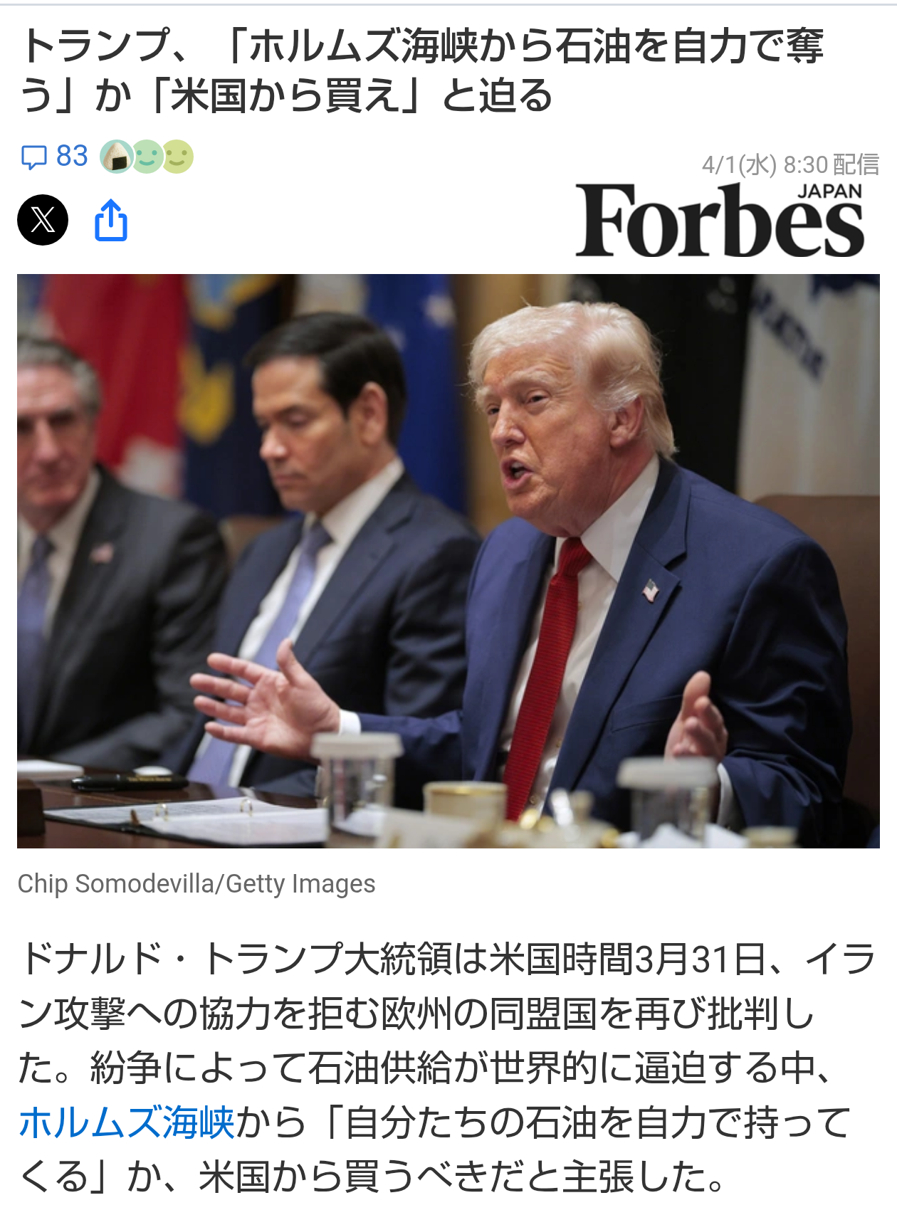 | … | 69126/04/01(水)11:24:22No.1416287994+>戦費を湾岸諸国に押し付ける事検討しだしたらしいなこいつ |