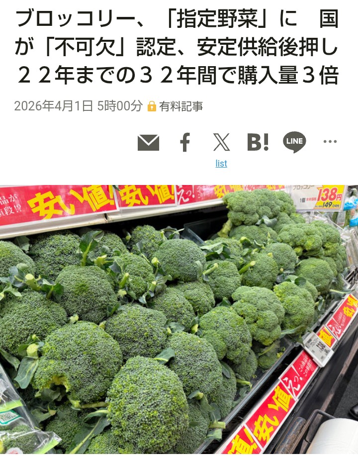 | … | 926/04/01(水)09:59:29No.1416273835そうだねx4なんか十数年前からブロッコリーいいよみんな買ってるよって話だったけど遅かったぐらいまである |