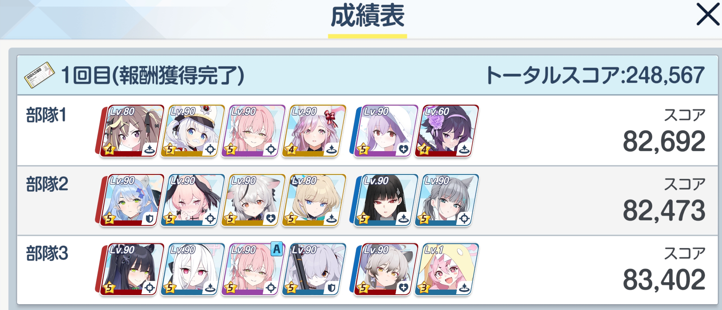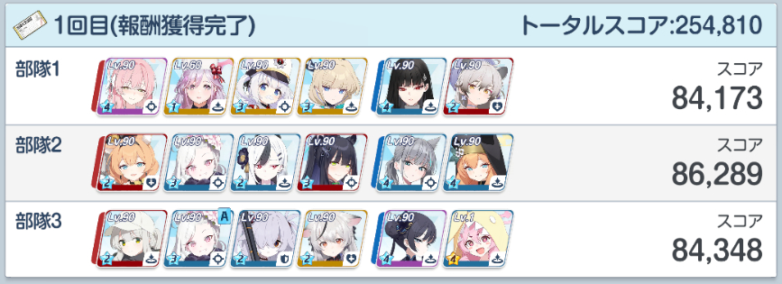| … | 34226/04/01(水)21:38:37No.1416432081+>すんなり140取れて今回楽でよかったなあと思ったんだけどよく考えたら3つ目の編成ケイちゃんいる意味全くなかった 攻撃力上がるし… |
