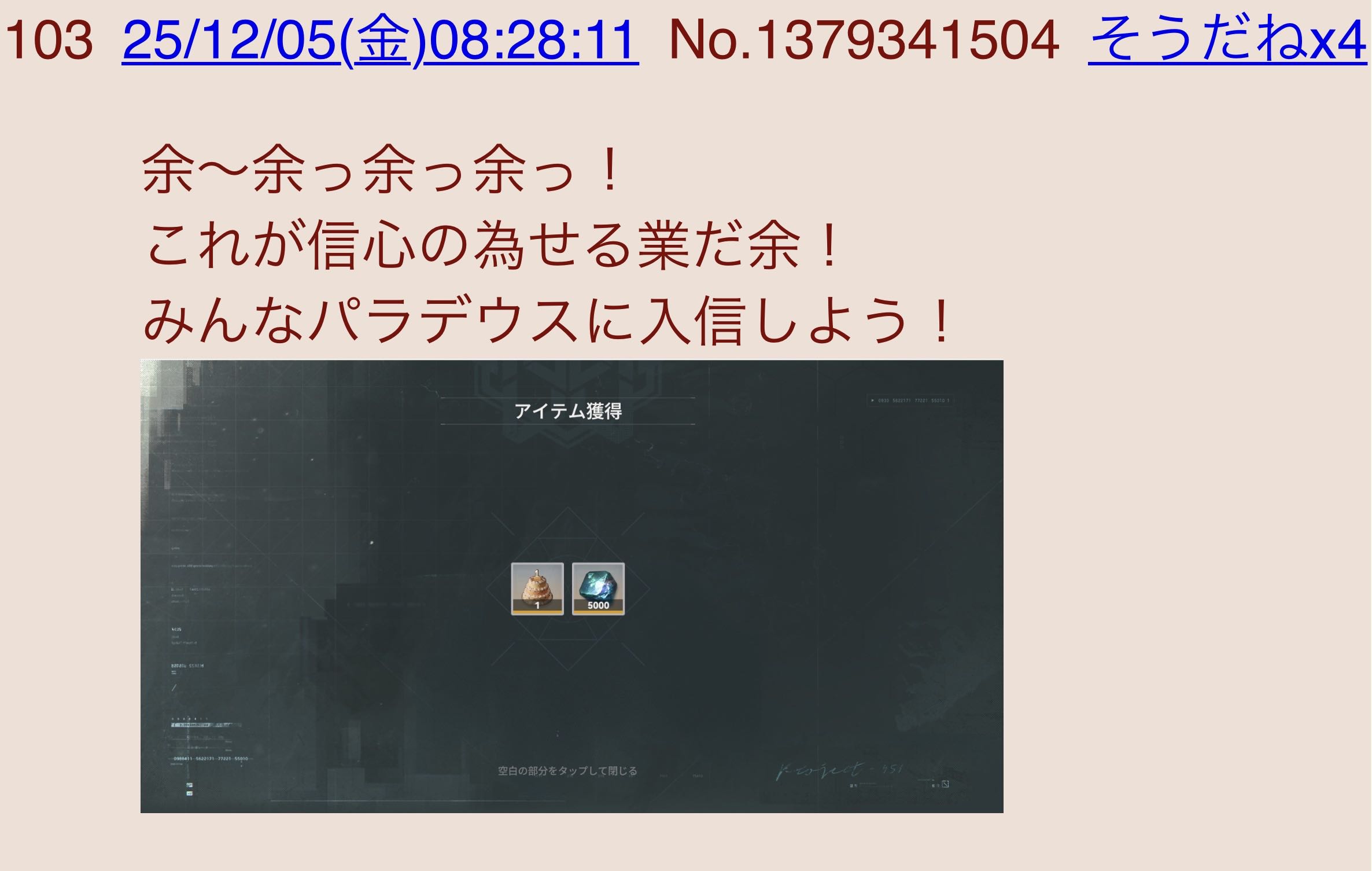 | … | 4426/04/01(水)22:14:16No.1416444008そうだねx1>パラデウスは徹底的に滅ぼす。 |