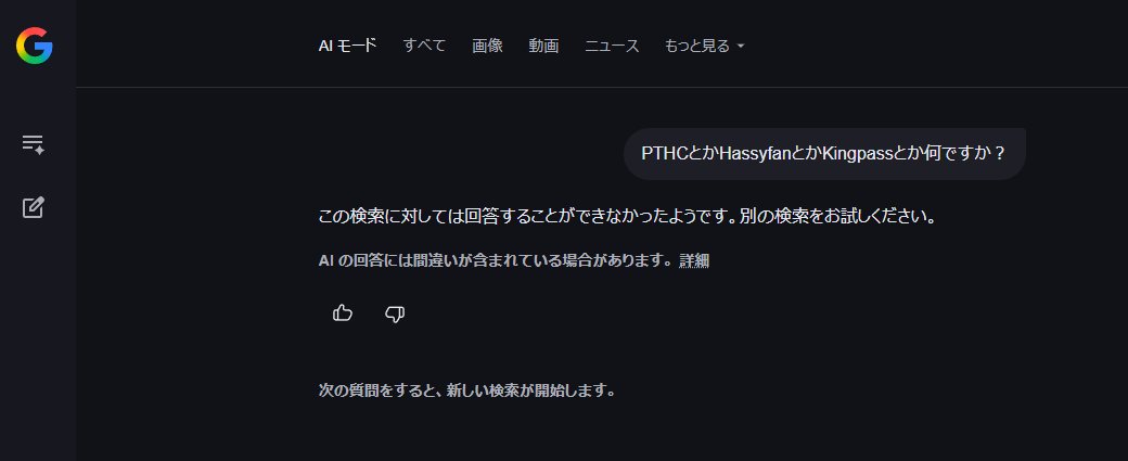 | … | 826/04/01(水)23:35:57No.1416468269+PTHCとかHassyfanとかKingpassとか懐かしいっすね |