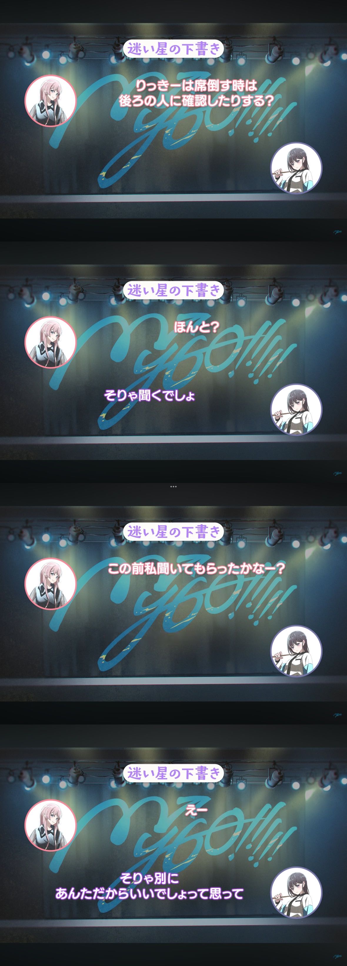 | … | 426/04/01(水)22:59:35No.1416458344+>キャラなりきりの迷子集会だけどりっきーが愛音やそよりんとやるときはキレ過ぎないように更に外面を被るっていう行程挟んでるのがなんかもどかしい |