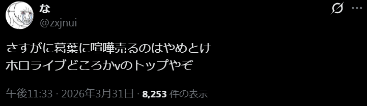 | … | 1026/04/02(木)08:56:22No.1416521184そうだねx8>にじさんじが悪でホロライブが被害者なんでしょ |