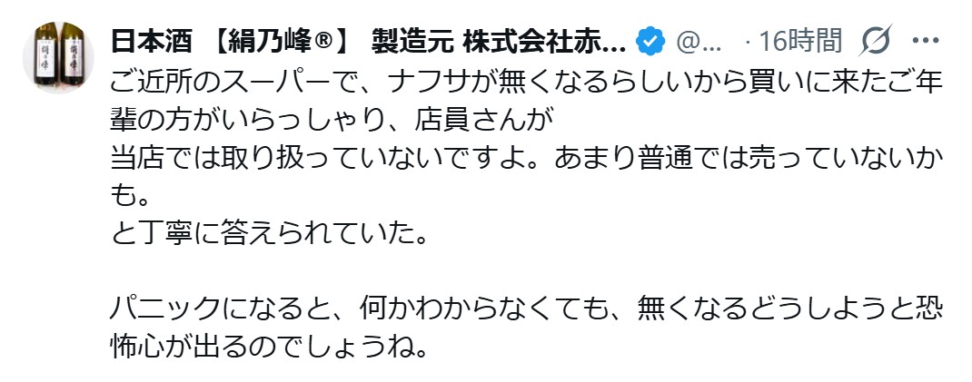 ナフサ買い占め老人はちょっと面白いと思うこのスレは古いので、もうすぐ消えます。