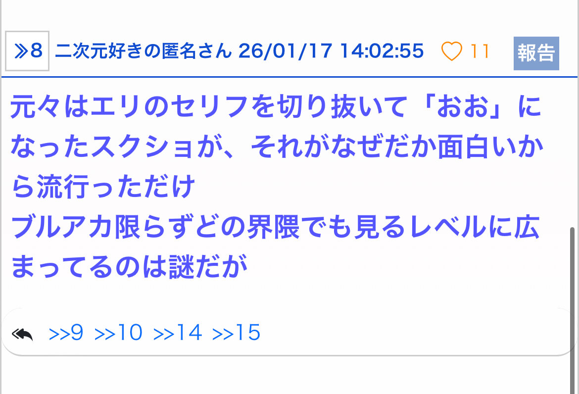 | … | 8026/04/02(木)14:20:01No.1416581649そうだねx9>なんか言い返したら負けそうだからやめとこくらいの意味かと思ってた |