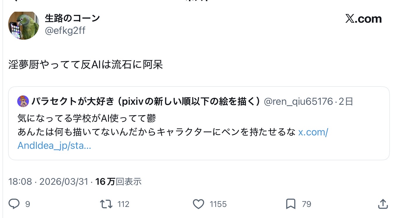 | … | 2726/04/02(木)17:46:18No.1416621502+>https://x.com/AndIdea_jp/status/2038506004946755918?s=20 |
