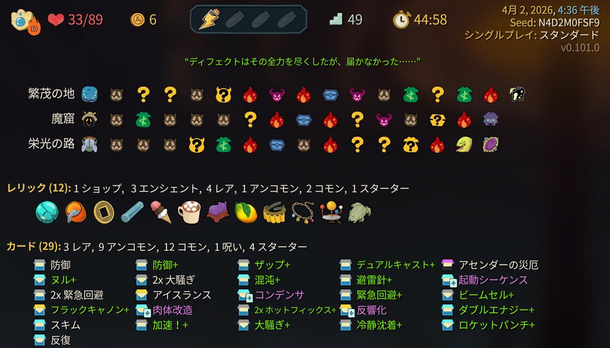 | … | 32026/04/02(木)18:56:04No.1416638800+>○○特化ってよりは強いパーツ色々取って1層2層ボスのレアカードとか見てそっちに寄せて行くのが安定するとは思う |