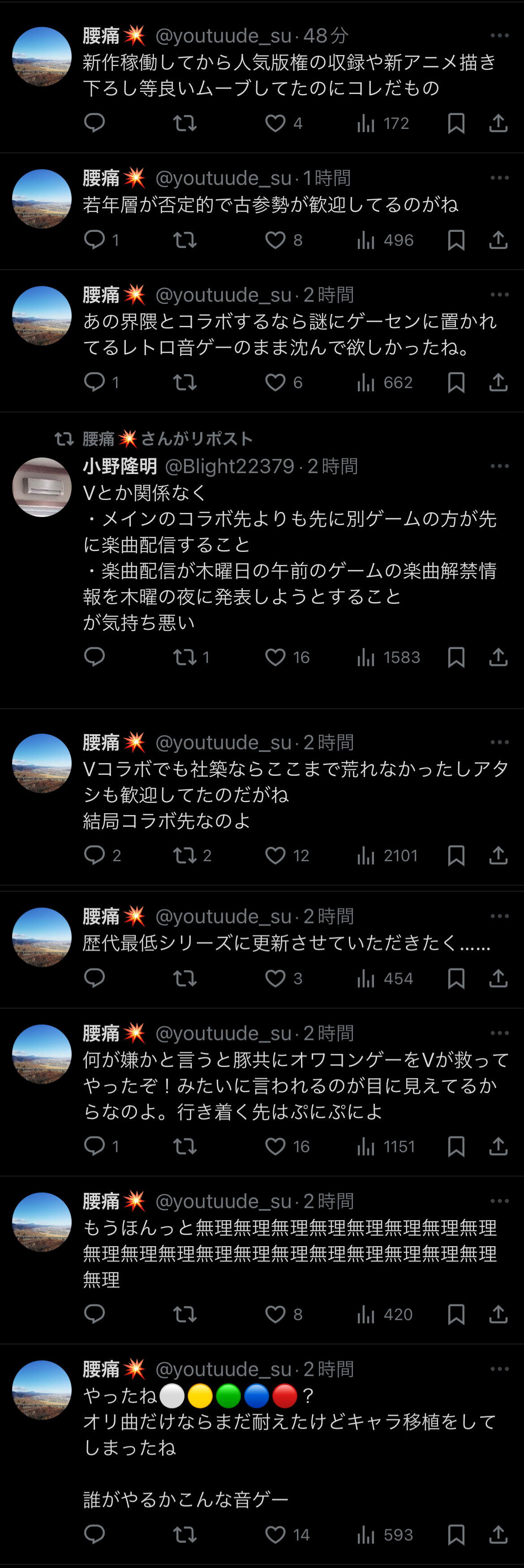 | … | 4926/04/03(金)01:17:50No.1416756020そうだねx5ライブにコナミが全面協力してる時点でキレろよ…キレてたわ |