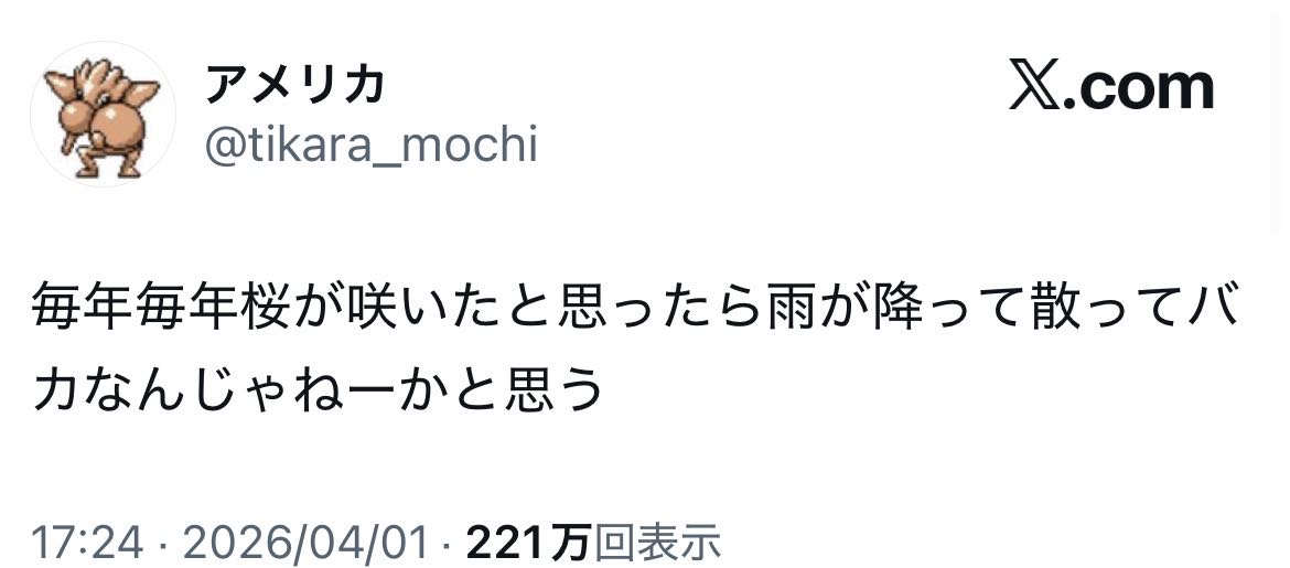 | … | 1026/04/03(金)10:58:49No.1416804264そうだねx2>毎年なんだから慣れろよ |