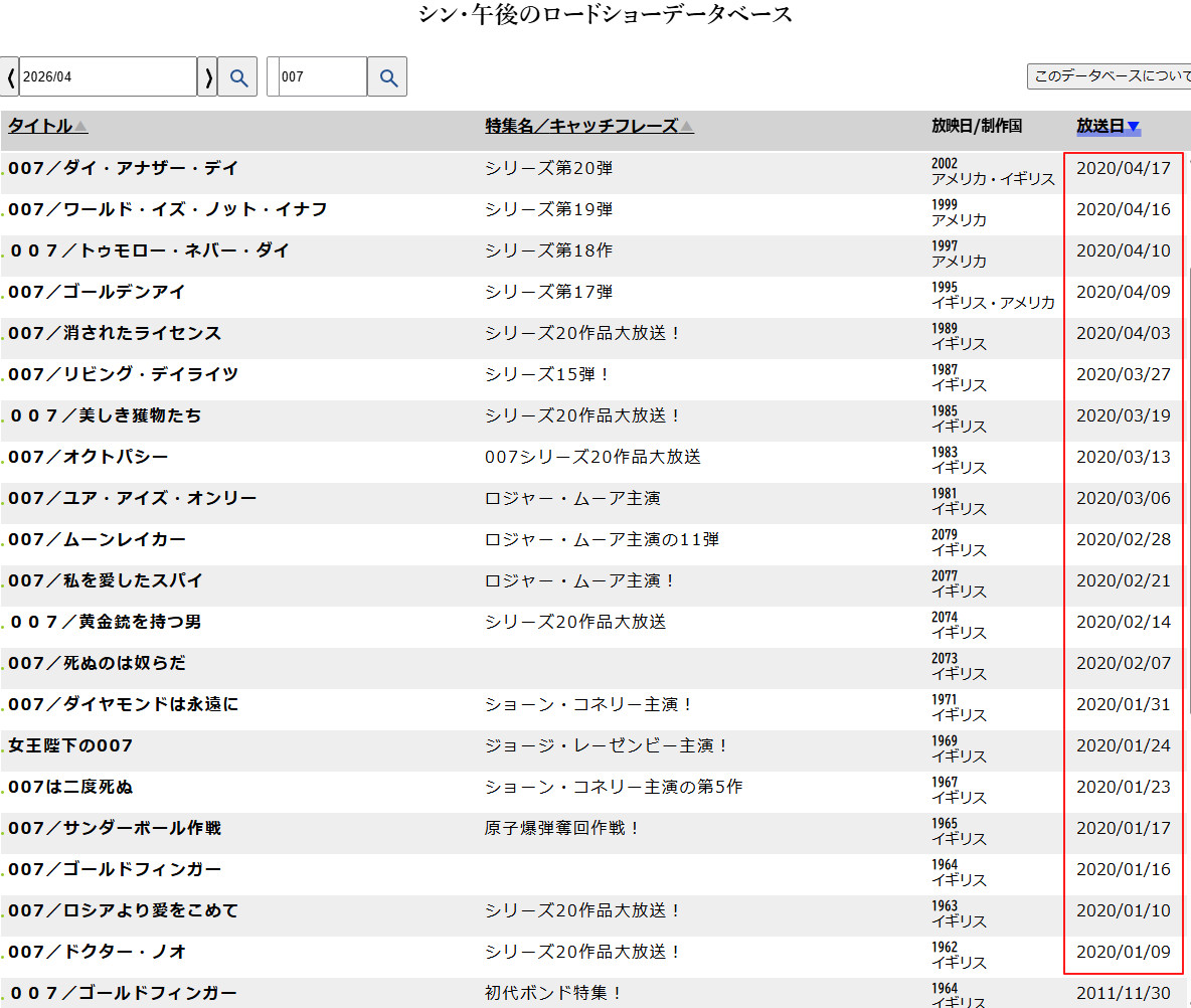 午後ローはイーストウッド大好きすぎて6週間くらい金曜日がイーストウッドだった事があるが今回は007が24週間連続なのが上を行きすぎてやばい
