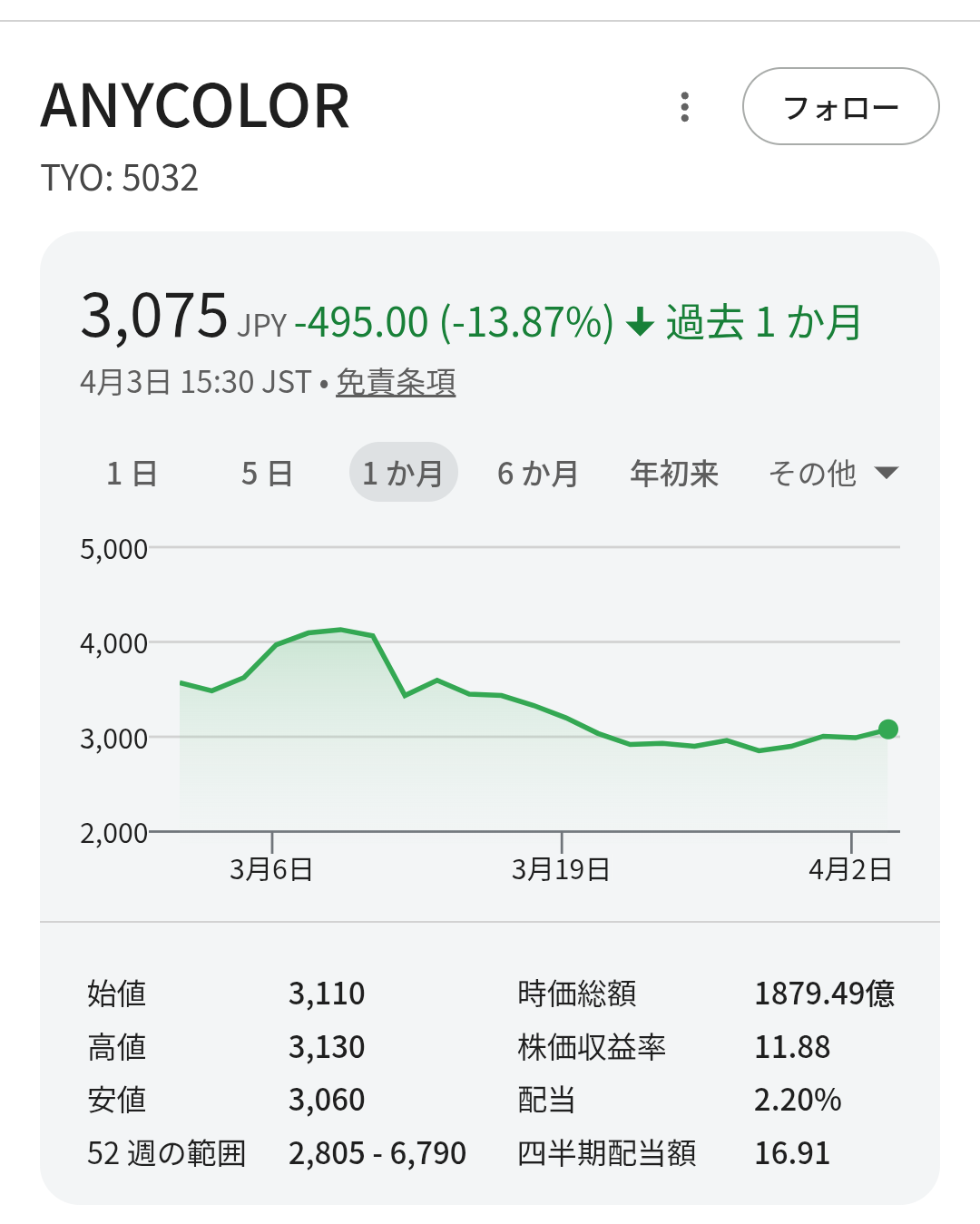 | … | 2426/04/03(金)17:54:57 ID:rUzrlbPgNo.1416891967+カバー 上場初値割れ 致命的 |