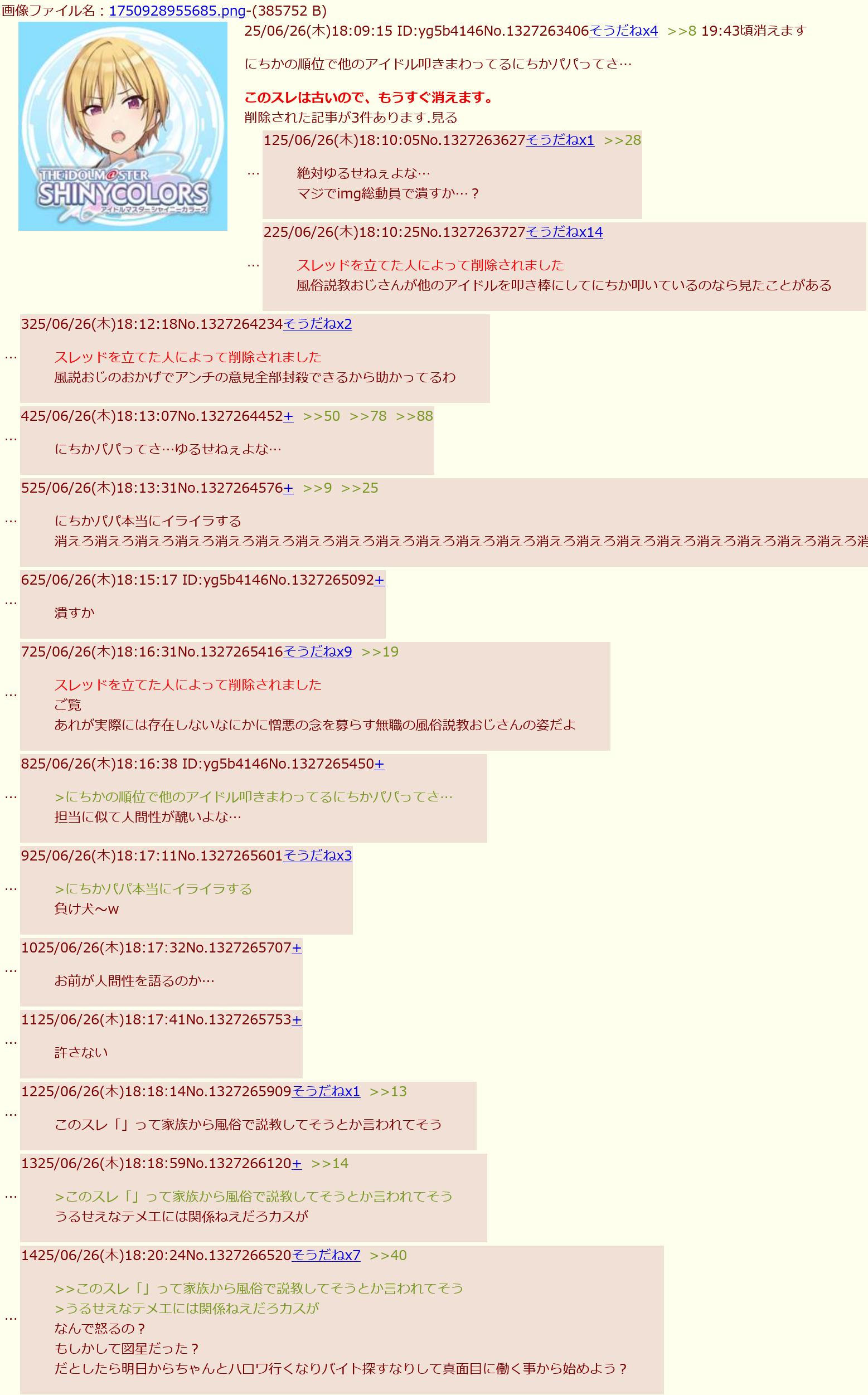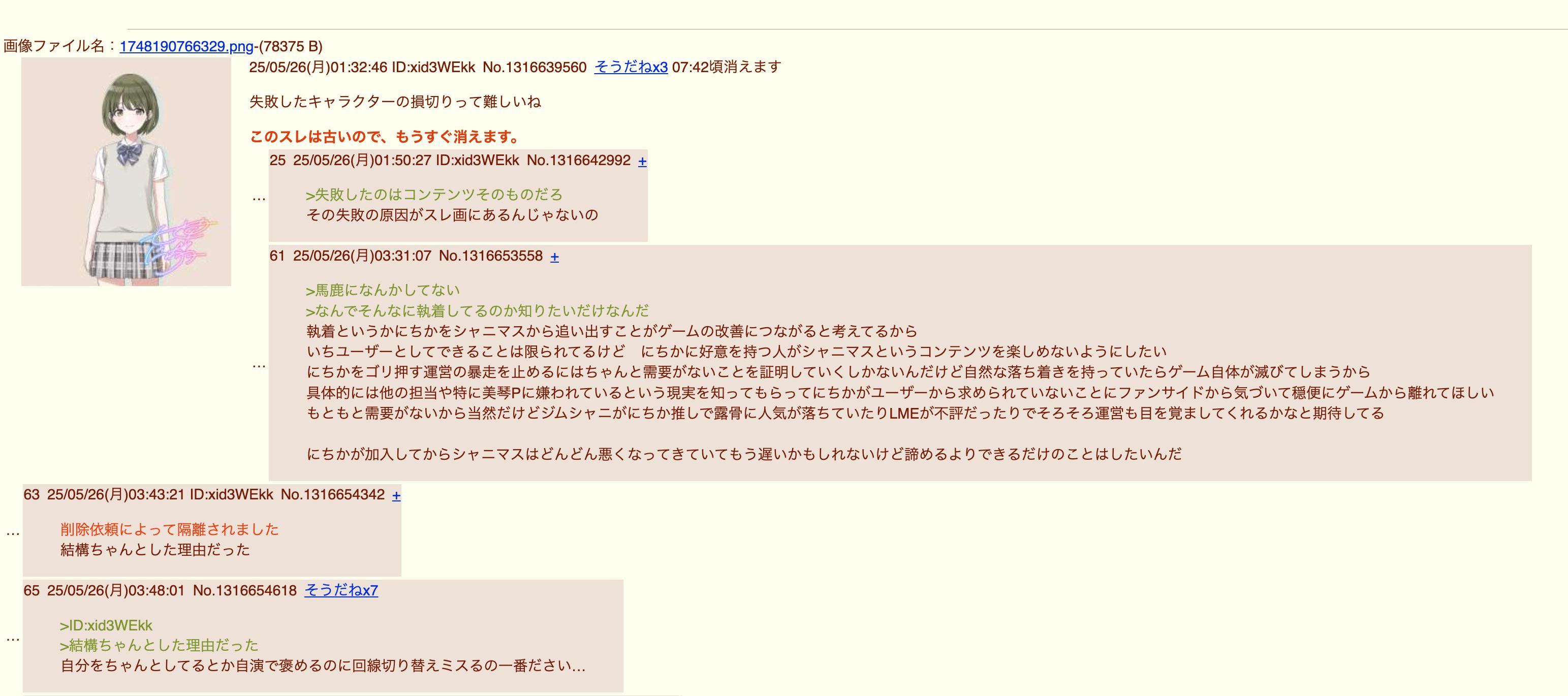 たぶん粘着と戦うのが好きなだけでにちかとか別に好きでもないんだろうなスクショの人