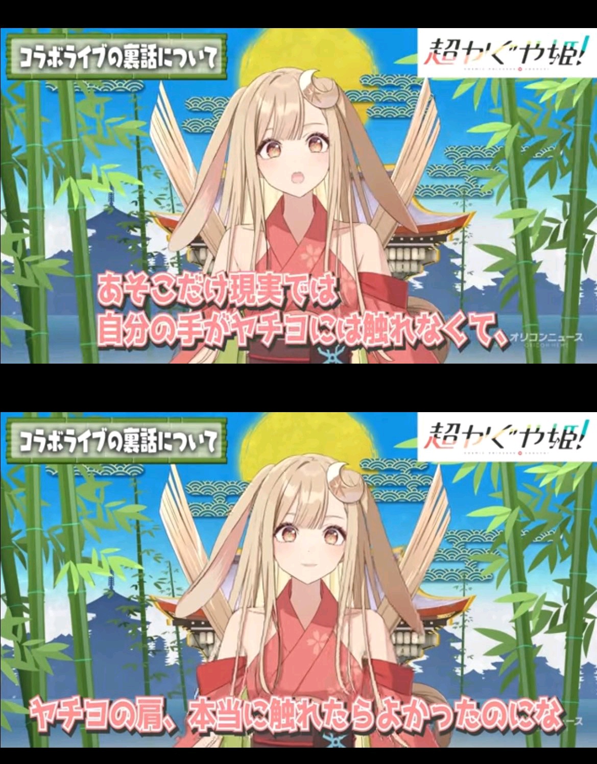 | … | 7726/04/03(金)21:21:14No.1416964105+>50時間彩葉に昔話してたって事は活動時間的に彩葉が来てから起きた事になるしかぐや帰った後は傷心でずっと寝てた説あると思います |