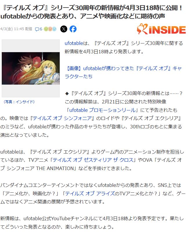 | … | 2726/04/03(金)22:38:46No.1416994339そうだねx4なんか毎回この日になにか発表します!ってのを無駄に大げさに宣言して実際の内容はガッカリ…ってのをやるよなテイルズ |