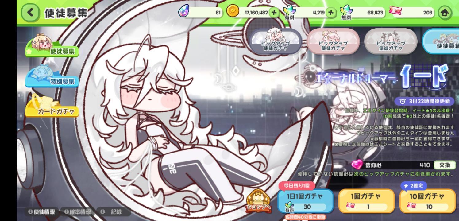 | … | 1326/04/05(日)11:46:59 ID:rPQ6zJscNo.1417450902+次の神姫使徒は性格ガチャの天井で交換出来るだろうからイードに全ツッパする我々の姿勢 |