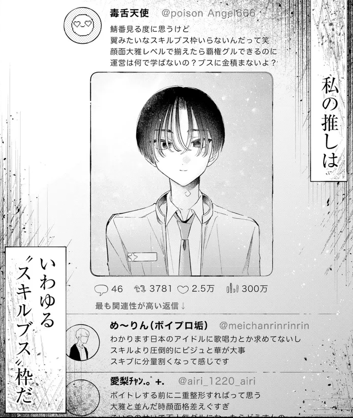 | … | 32626/04/05(日)15:07:48No.1417503890+こういうのって集団内で相対的に見たり他のメンバーのファンなやっかみだから一般的にはイケメンだろうがブス認定されるよ |