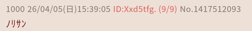 | … | 8026/04/05(日)15:40:29 ID:45xZddWoNo.1417512576+お上手 |