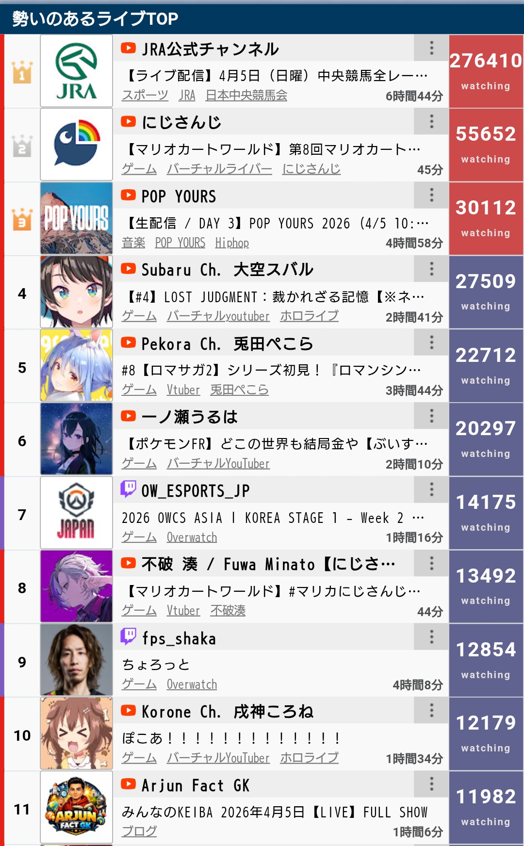 | … | 1126/04/05(日)17:00:58No.1417536710+生配信はいいんだけど無駄に更新の多い動画やShortが邪魔なのさえどうにかなればな… |